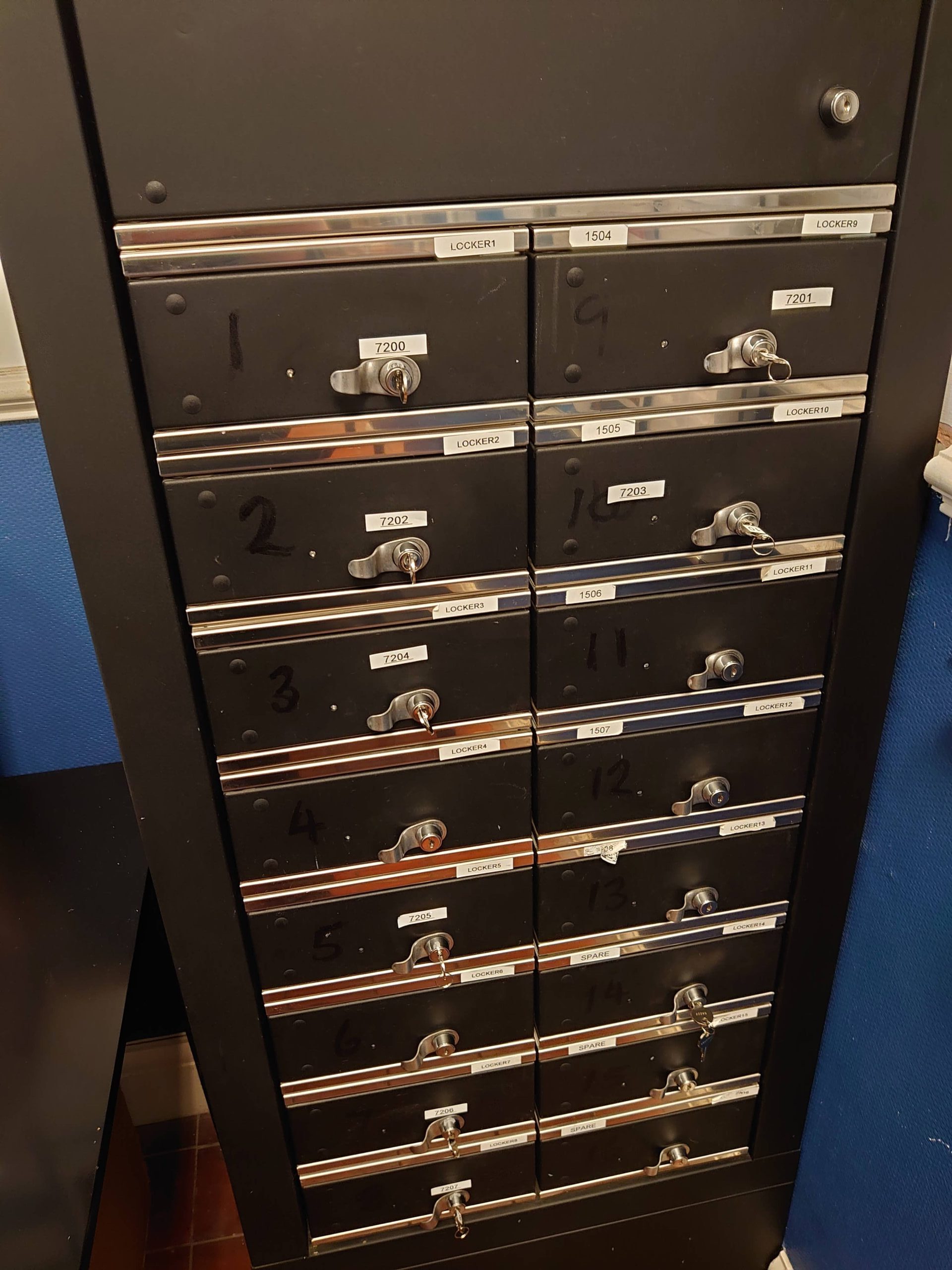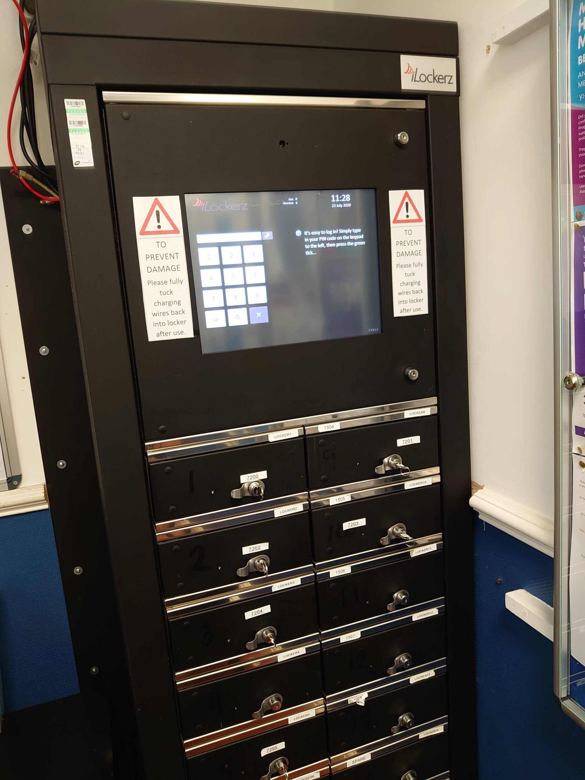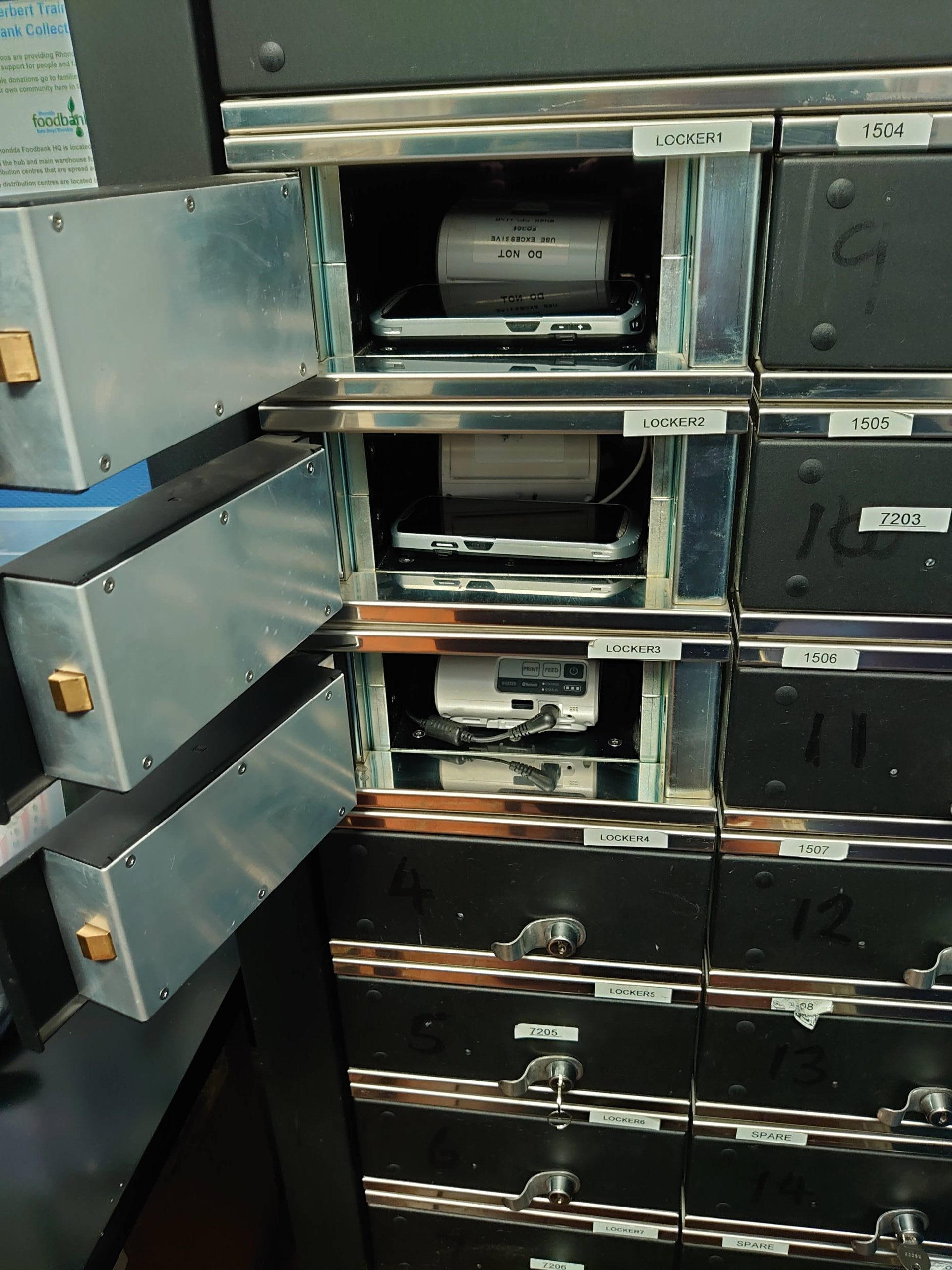 a mobile device iLockerz system with built-in bespoke software to allow connection and return configurations as well as bring your own devices while staff are taking breaks.